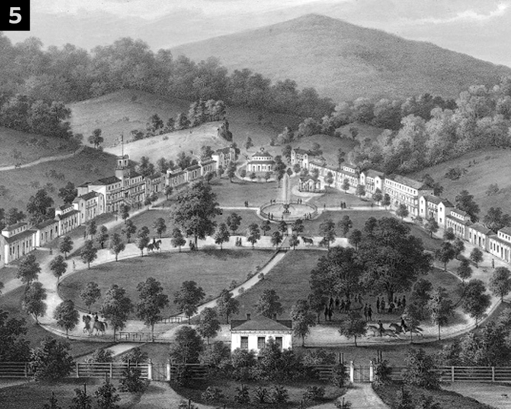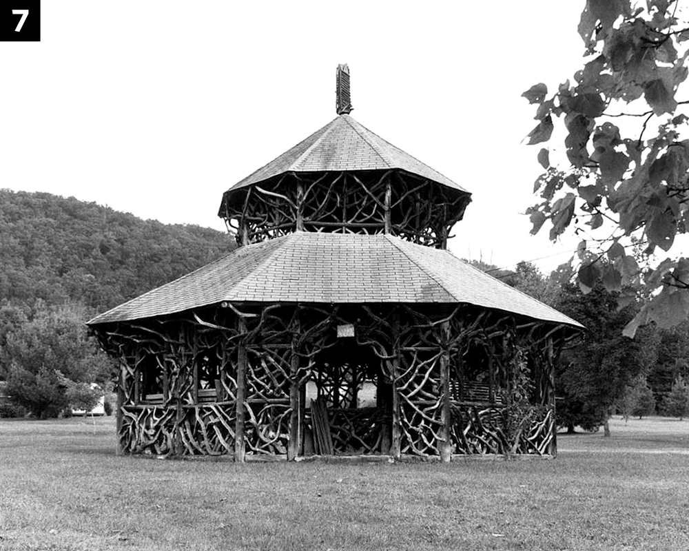 This was recited near the site of a hot springs resort, completely razed, but 175 years ago the area lived up to its name as being a hot spot. The beauty of this area is a healing source in more ways than one. Architecture nested in the mountains offer therapeutic views, and new understandings. Our path took us through history, backwards, from colonialism to modernism and one thing led to the other, figuratively and literally. To travel was to time travel. Highlights included — A rustic gazebo, atop another healing spring. This one was built by contorted vines, commanded into place, like the visual effects of controlling a disease. An early 20th century schoolhouse, directed by the intellectual force of Booker T. Washington which practiced one of the earliest versions of design-build. A 14-sided polygonal barn, one of the most unique in the country; one of the most beautiful images on the website. A tetradecagon shape, and for cows who can't pronounce this word, they fondly refer to it as "moo".