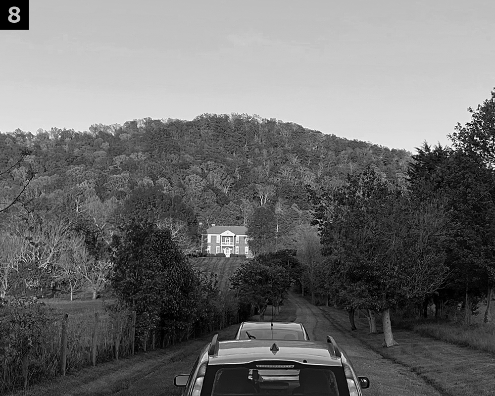 First stop is modernism. Last stop is a meadow overlooking the Blue Ridge mountains. Exit the car. Keep your distance. Smell the lilacs. Look at the view. Doesn't it just take your —