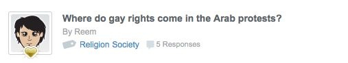 Al Shafei: We actually launched Ahwaa in April for strategic reasons. It was safer for us because the repression was too focused on political dissent and we wanted Ahwaa to escape the attention of regional governments. There's a topic on Ahwaa about this too. People in the region are generally optimistic about what these movements mean for freedom and equality, but we also don't want to be naive to assume that gay rights are achievable anytime soon. Deep societal changes don't happen overnight, and in the meantime LGBT persons in the region are trying to find support from fellow queers and straight allies. And this is what Ahwaa is all about.