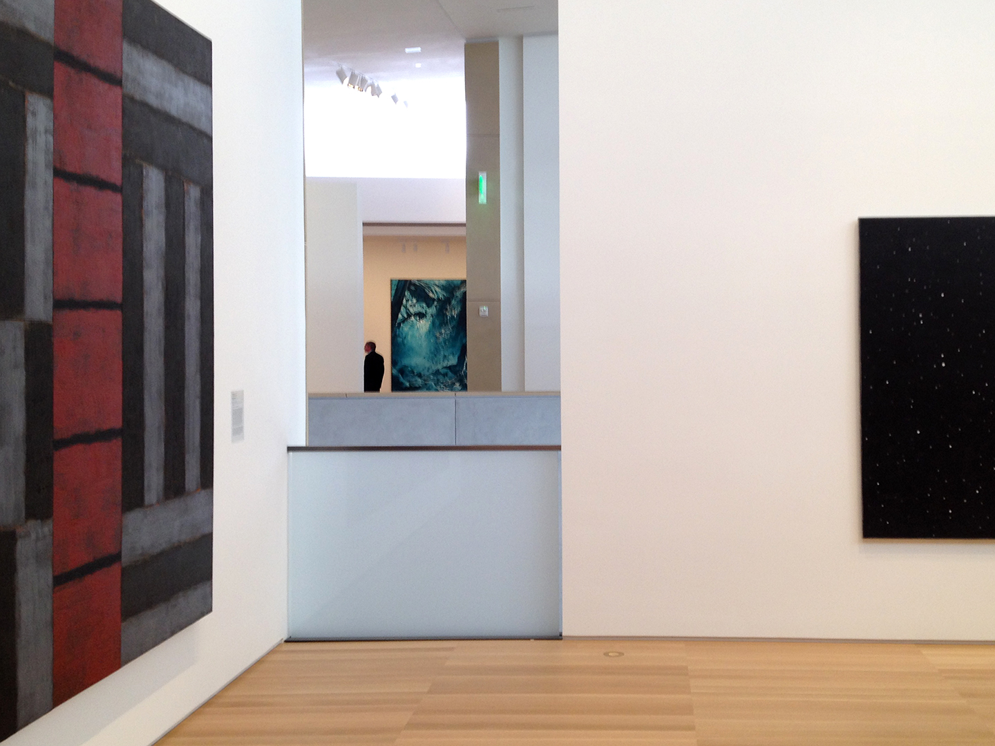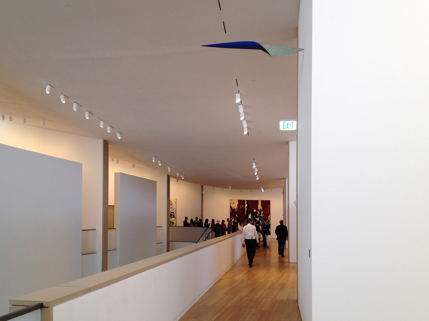 Gallery interior, view across the central staircase. On the left is Sean Scully's Red Ascending (1990) and Mark Tansey's Yosemite Falls (Homage to Watkins; 1993) across the atrium. Photo by Rachel Berger