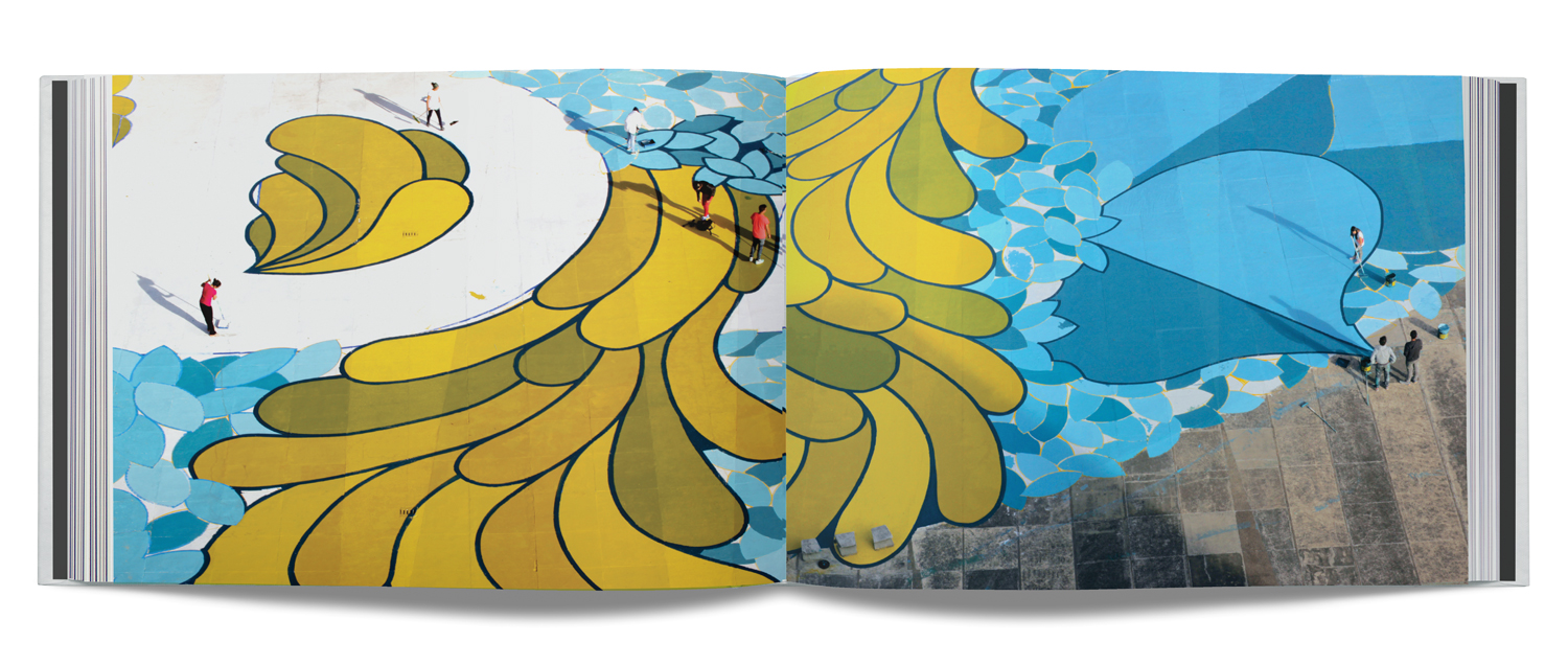 There are clear masterpieces of supergraphics such as Lance Wyman’s Mexico City Olympics (1968), Deborah Sussman’s Los Angeles Olympics (1984), Barbara Stauffacher-Solomon’s Sea Ranch (1965). I wanted to find the best examples of the next generation of designers and artists in the field. The end product is The Field Guide to Supergraphics: Big Graphics in the Urban Landscape. The best part of writing a book is learning about a new approach, or discovering incredible designers. This book did both. And for those concerned about the size, it’s much thicker than I expected. It has 384 pages.