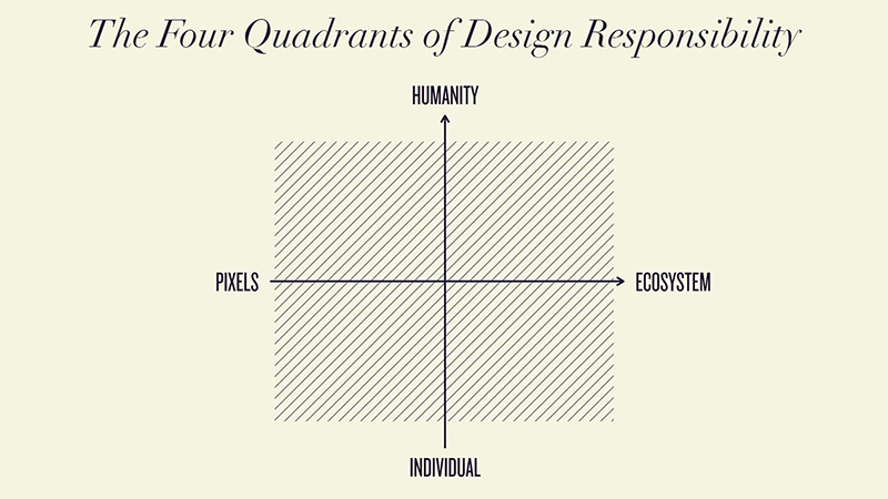 The Four Quadrants of Design Responsibility looks to illustrate the expanding scope of responsibility we have as designers, to not just design for people and products, but for systems and society.