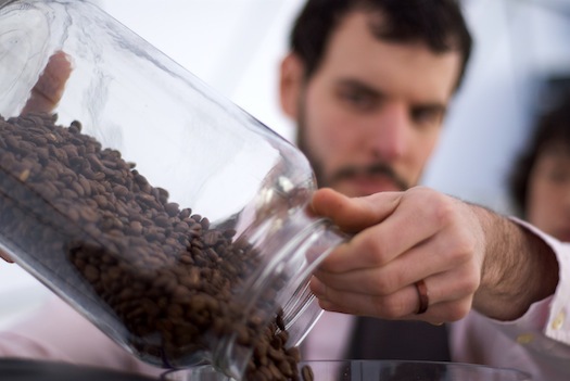 Pouring beans at 2011 TED Conference coffee bar. Photo: Brian W. Jones