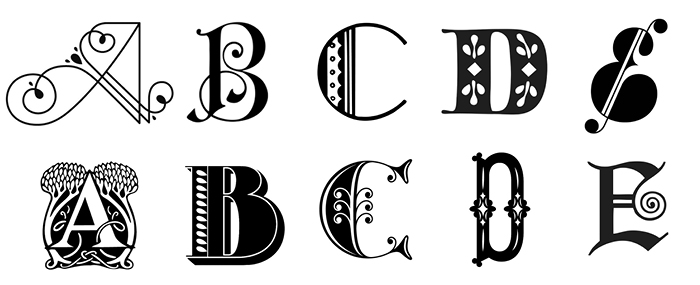 While the Bay Area is the epicenter of mainstream digital design’s mindless minimalism, it is also at the heart of a decorative zeitgeist. Hipster coffee and barber shops that cater to tech workers and the creative class have embraced a steampunk aesthetic of leather aprons, elaborate mustaches, and gleaming espresso makers that resemble monotype machines. In print design, the NOW’s decorative zeitgeist is inspired by a pre-digital— even pre-modern—age of letterpress, screen printing, hand-lettering, sign painting, and mural making. The period influence is so strong that it can be hard to tell the difference between true vintage lettering and examples of it from the NOW. Below is a mix of drop caps from lettering artist Jessica Hische’s Daily Drop Cap project and from the Briar Press’s collection of nineteenth-century cuts. Rollover to see which are Hische’s.