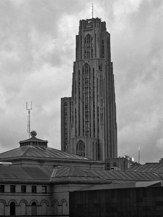 If architectural bravura was an indicator, the answer would be yes. The older tower (above) which looks like something out of Batman, is the University of Pittsburgh's Cathedral of Learning. The brutal black one (below) is the HQ of UPMC, an $8 billion healthcare colossus. The black tower, says its main tenant, is “tangible evidence of Pittsburgh's transformation into an international center of medicine, technology and education.”
