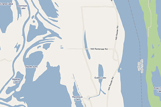 What's that blue line on the Washington–Oregon border? You know, the really big one that early explorers thought was the Northwest Passage? Here's a hint: It connects Malarky Lake to Bower Slough.
