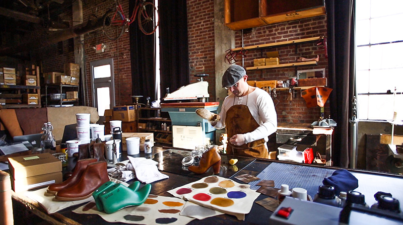 Yet Nappi, who craves working with his hands, is hardly pretentious. While he may design and sell high-end boots, he encourages his clients to pair them with jeans and a Hanes T-shirt. Personally, he is happiest when working in his shop, getting grime and dirt under his fingernails. Nappi’s primary mission is to create durable goods that people will wear, stand behind, and feel good about. He believes in grit, being good to others, and treating his place of work like his home.