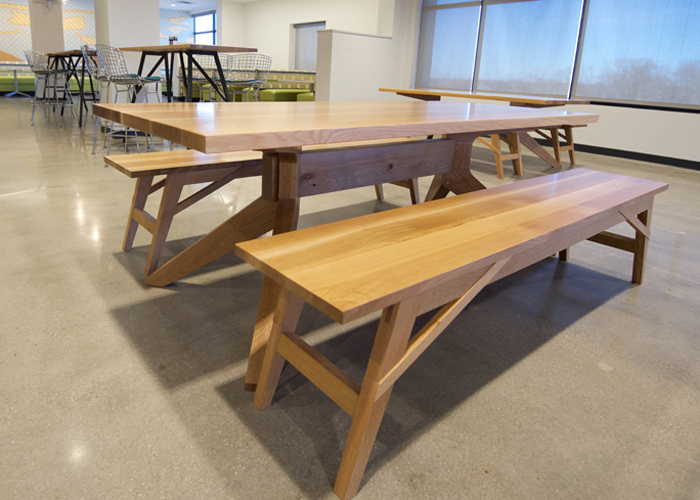 Climate Corporation corporate HQ with Dempsey tables, Alek Benches and Eads tall tables in the background (in quartersawn white oak).