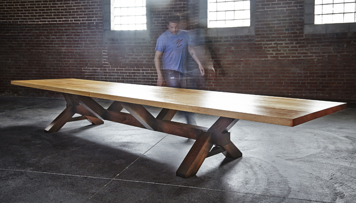 Corporate conference table with Martin Goebel (for scale) 192” x 44” x 29”
