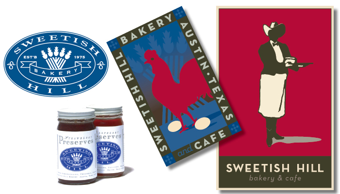 A partial list of Hixo’s clients included well-known companies like American Airlines, British Caledonia Airlines, BookStop, Barnes & Noble, Continental Airlines, Southwest Airlines, Santa Monica Museum of Art, Shell Oil Company, Exxon, Chevron, Trammell Crow Company, Southland Corporation, IBM, Microsoft, Adolph Coors, Lone Star Brewery, and Conde Nast. The companies that have really resonated with me, however, are the ones I have interacted with over the last thirty years that I’ve called Austin my home. Mike’s branding work for local institutions like Sweetish Hill Bakery, Austin Museum of Art, Seton Hospital, the University of Texas, and Whole Foods have become icons in this dynamic city. Mike’s original logo for Whole Foods is still used by the grocery store behemoth all over the world.