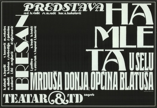 Mihajlo Arsovski, poster for the play “Acting Hamlet in the Village of Mrduša Donja,” Theater &TD, Zagreb, 1971