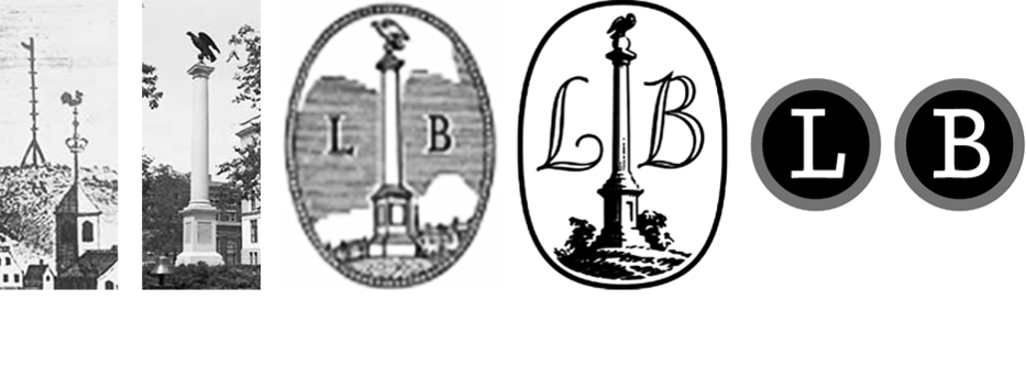 Little Brown’s original colophon featured an illustration of the Charles Bulfinch monument atop Beacon Hill in Boston , where the firm was originally located. The monument commemorated the location of the city’s earliest alarm system : a beacon to announce a fire or attack. In 2009—after 172 years—the original logo was replaced by a more legible, but less storied, set of typewriter’s keys.