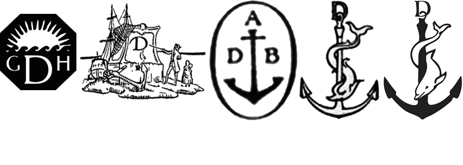 The Doubleday family ran through a series of publishing partners and colophons built on trees, books, and laurels before landing on the decision to co-opt the anchor and dolphin wholesale from Aldus Manutius’ Aldine Press (est. 1494). Superficially, it seems that the aim was to imbue Doubleday with Manutius’ reputation for quality and innovation—and it was that—but the anchor symbol was also a direct response to the firm’s own history. In 1927, Doubleday had merged with George H. Doran Co. to form Doubleday Doran. Doran brought a water symbol, which had been absent from Doubleday to that point. The new firm chose a mark that featured an anchored boat with a man pointing at the house’s double D initials. In 1946, when the company changed its name to Doubleday & Co., it dropped a D. Then in 1954, when Ken McCormick and Jason Epstein founded an imprint of Doubleday, Anchor Books, the scene was reduced to anchor and initials alone for their imprint. It was from there that they jumped to Aldine’s colophon, and this became a logo that went on to represent the whole company.