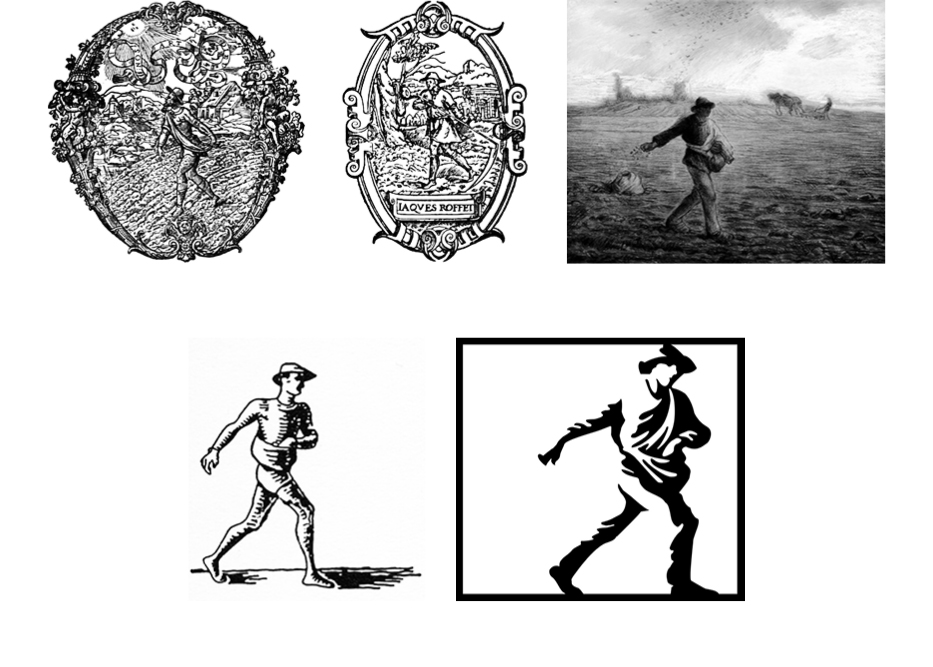Richard Simon and Lincoln Schuster stumbled upon “The Sower,” a painting by Jean François Millet, as they strolled through a gallery during their first week of publishing. It occurred to them that the image of a man sowing grain was the perfect publishing metaphor for “planting seeds of wisdom.” So they hired John Everett Millais to render a reproduction of the painting for their colophon. This story suggests that they were possibly unaware of the long tradition of using agricultural symbolism to brand presses, with Jean De Tournes (est. 1542) and J. Roffet (est. 1549) as two examples.