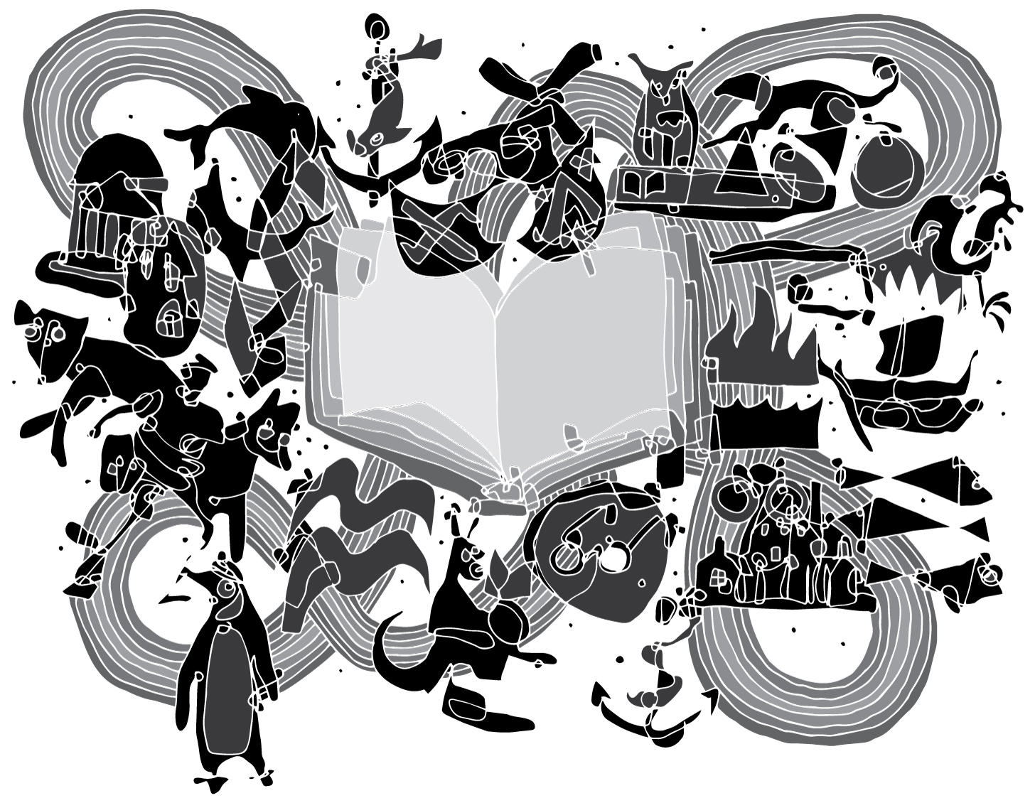The waves and flames of HarperCollins represent the merging of two firms—Harper & Row and William Collins, Sons. In 1817, James and John Harper opened a print shop. Before long, they began publishing their own books and adopted a colophon that featured a torch changing hands. It was supported by a quote from Plato’s The Republic that refers to a torch race: “Running in the race they pass the torch one to another.” In 1962, the firm merged with Row, Peterson & Company to form Harper & Row. They retained the mark of the flame but abandoned the connection to Plato and the core idea of the flame being passed — that is, until it was passed to William Collins, Sons.