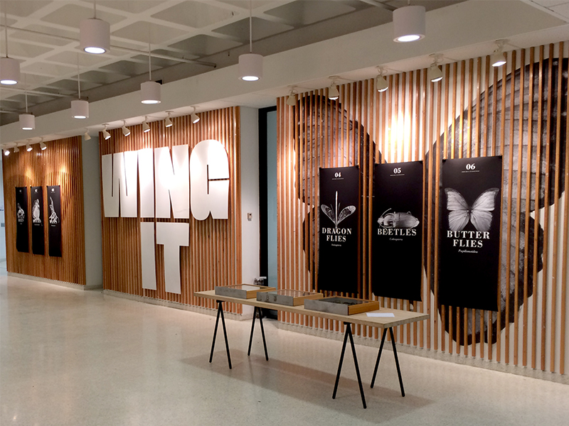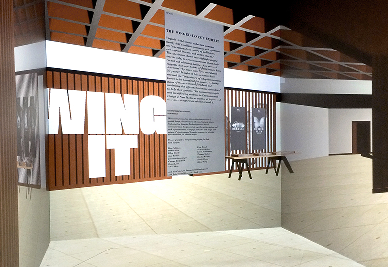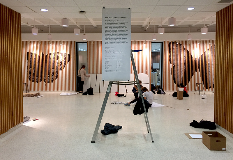“Suppose there were no bees or butterflies. Suppose no bird should ever cross the skies.” When Elvis first sang these words in 1967, he was supposing an impossibility — an unimaginable scenario. But have you heard? Last October, a research study in Germany reported a dramatic decline of winged insects — around a 75 percent drop of insect biomass over the last 27 years. This is alarming news. But thankfully this is not an alarming article about species loss. No, it’s quite the opposite. The focus rather is on the proliferation of another kind of environment — environmental graphic design — and how our students designed an exhibit that was so fly.