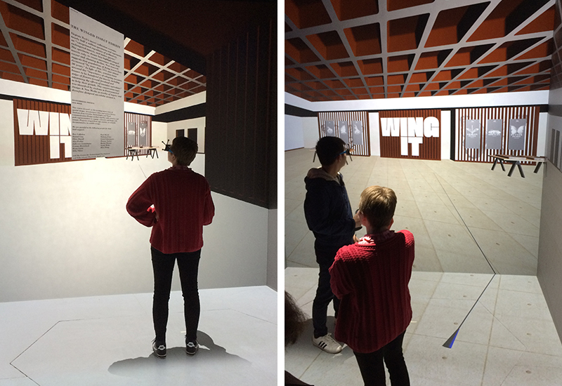 So how do you design an exhibit when you can’t test in space (due to scheduling) or test with real specimens (due to fragility)? How to you plan spatial relationships and site navigation? Do you see where this is going? Of course not, because nobody’s holding the motion tracker. So grab your joystick, you’re about to enter the Hyper Cube — an immersive digital gallery — where the “traditional development process” is suddenly replaced by an “agile” one. Here, layouts change on the fly, “what-if” scenarios are tested, and answers to questions “not yet known” may arise. Move that wall over there? No problem. Make that sign defy gravity? No sweat. Set the POV for different heights. No worries. Wall typography, specimen case arrangement, and butterfly graphics were all quickly tested before final fabrication, giving new meaning to phrase “fake it ‘til you make it.” New meaning, in fact, was the goal. As Don Norman says this new “external aid” can “enhance cognitive abilities” for when “the representation and the processes are just right, then new experiences, insights, and creations can emerge.”2 Think of it, virtual reality changes reality. Or at least our understanding of what could be.