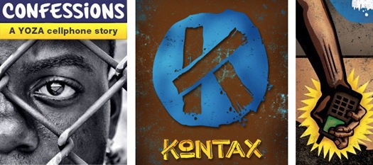 Yoza’s first story, Kontax, was released experimentally in 2009. Written by Sam Wilson, an author and scriptwriter, Kontax followed the adventures of a local graffiti crew around Cape Town. Its 20 pages were initially published over a month of daily dispatches via a mobisite and later on the popular MXit social network. Each episode, released in both English and isiXhosha, was around 400 words long. Prizes were offered for the best readers’ comments and sequel ideas.
