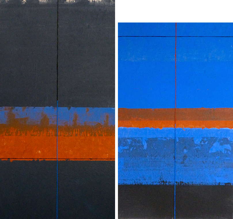 Dan Fern (b.1945) is a legendary teacher, who spent the better part of his career at the Royal College of Art (RCA). As an illustrator for Nova, The Sunday Times Magazine and other publications, he was invited in 1974 to teach in the illustration department and in 1986 he was appointed a full-time professor of illustration. In 1994, Fern became head of the School of Communication Design, with responsibility for graphic design, illustration and interactive multimedia. In parallel with his educational commitments, he has continued to work as an artist in different realms and with many media. In November 2018 a monograph of Fern’s dramatic abstract landscape work from 1996-2017, “On the Horizon” was on view at London’s Coningsby Gallery with a 200-page eponymous monograph that covers Fern’s work over the past 20 years using painting, drawing, collage, photography, sculpture and poetry to express ideas about landscape and the nature of things both seen and invisible. It includes a foreword and essays by Rick Poynor and designed by art director Nerina Wilter. Although communication, transportation and shipping goods has been streamlined in the 2000s, only recently did I receive the impressive On the Horizon. So better late than never, I asked Fern to discuss his paintings and collages and the ways by which he weds the fine and applied arts.
