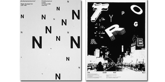 When I graduated from the Yale MFA design program in 1966 I was invited to join the faculty, a role I have fulfilled ever since. In January 1970, on Armin Hofmann’s recommendation, Dan Friedman arrived at Yale, fresh from his studies in Basel, to teach. He was a strange, shy character in a tight blue suit, gray shirt, and black tie with a shock of fuzzy hair and a peculiar, halting speech pattern.
