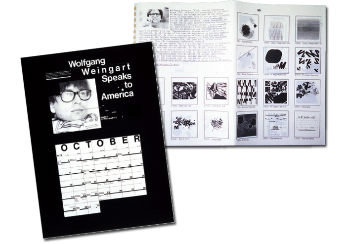 The next year Dan arranged for Weingart to tour the US. Lecturing at scores of schools, including Yale, he offered a carefully thought out alternative to the canons of high European modernist typography, amusingly titled “How One Makes Swiss Typography.” This trip suddenly turned Weingart into a cult figure and kickstarted student interest in his typographic experiments.