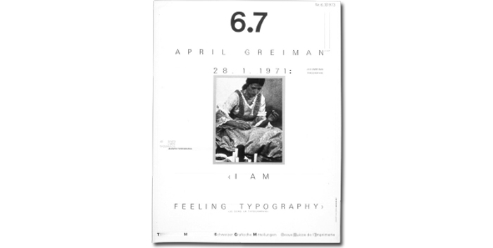 One of Weingart’s TM covers from 1972 featured a Basel pupil, named April Greiman, under the romantic and very Wolfgang-like headline: “I feel typography.”