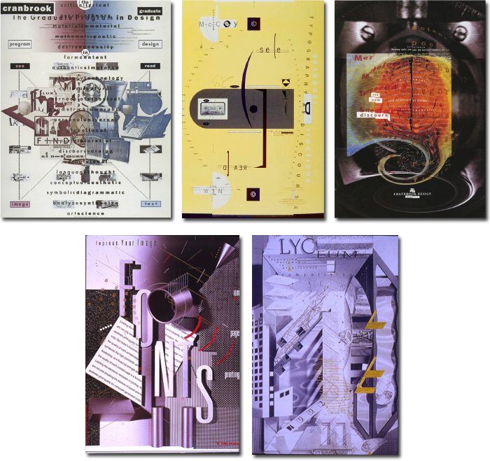 Their influence could be felt in the groundbreaking work of other designers following a similar path. Designers like Katherine and Michael McCoy at Cranbrook, their students Alan Hori and Scott Makala; and Nancy Skolos and Tom Wedell.