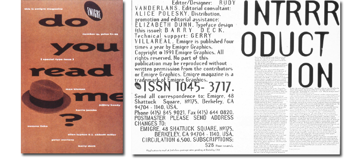 In their influential periodical Emigre, Zuzana Licko and Rudy VanderLans presented endless digital typographic innovations like the eccentric and off-kilter Template Gothic by Barry Deck.