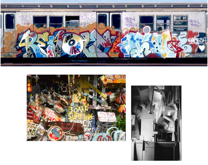 His inspirations had to include the rude, energetic tagging of the New York subway cars, the trash structures encountered on trips with his buddies to the Caribbean as well as the deep memory of Kurt Schwitters’ Merzbau, a similar decade-long to turn a domestic environment into a work of art.