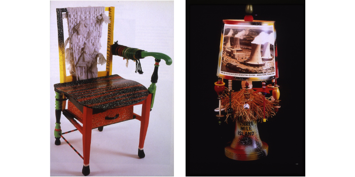 These influences seemed to tap into the deeper cultural shift being felt at the beginning of the 1980s from neat to messy, from newness and originality to appropriation and transmutation. The same shifts brought us the beat-up fantasy worlds of Road Warrior and Blade Runner, both of which came out in 1982. Energized by his new life, Dan entered a hugely productive period making old stuff new, endowing dumb objects with new meanings and turning trash into “tribal objects of domestic utility.”