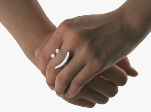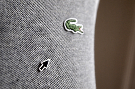 More recently, I’ve been collecting a few instances of what looks like the exact opposite of the digital goods idea: things from the digital world crossing over into physical manifestations. The specific instances that got me onto this were the Emoticon Ring and the Cursor Pin (both via Book of Joe). The ring is from a collection called “Signs,” by Chao & Eero Jewel in Finland, which aims to respond to and embody digital communication and connection. The cursor pin (designed by Melle Hamer) was evidently inspired by watching a television show on a Mac, and noticing the cursor arrow ending up, by chance, resembling a pin on some character in the program.