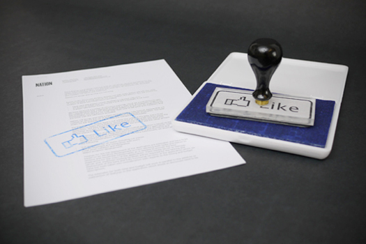 These curious things reminded me of “The Facebook Like Button Stamp” (by Nation) which I’d been somewhat amused by last year (via PSFK), and sent me back through my (digital) files looking for other examples of de-digitization. (That’s a fairly ugly term, of course, but it was the best I could come up with; counter-suggestions are very welcome.)