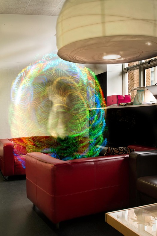 Luis Hernan, an Architecture and Interaction Design student at Newcastle University, has captured the invisible landscape of wireless networks by using long exposure photography. He's created a device that translates the energy of wireless fields into different color LEDs based on their signal strength. The results are striking photographs of beams of light sweeping and swirling around a suggested figure, which the designer calls “spectres” as they remind him of ghosts and because they're invisible to the human eye. Hernan also developed an Android app; allowing anyone to photograph the invisible world surrounding these amazing signals. Find out more about his project on Digital Ethereal, or listen to this interview on BBC Radio