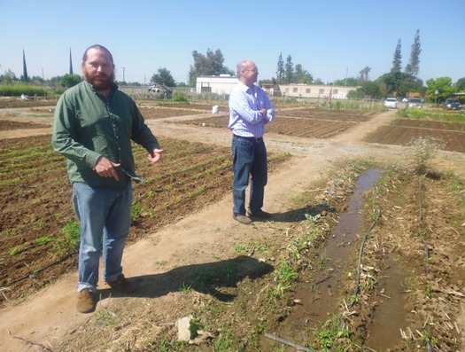 Kiel Schmidt, left, and Dan O’Connell, at a former government test farm