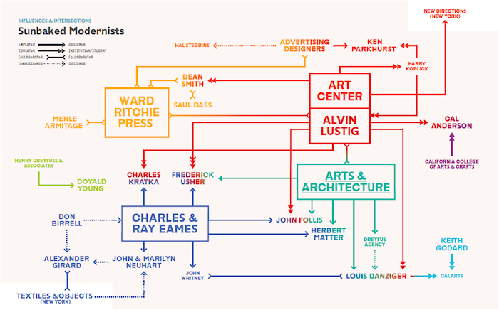 “Sunbaked,” according to the dictionary, means two things: “baked by exposure to the sun” and “excessively heated by the sun.” Apply those definitions to modernism, with its cerebral tenets, and it warms up to the point of overheating, as in, “the sun went to his head.” It’s an apt way to characterize modern graphic design as realized in California and to suggest how environmental characteristics might have transformed chilly established approaches and ideas into sunbaked goodness.
