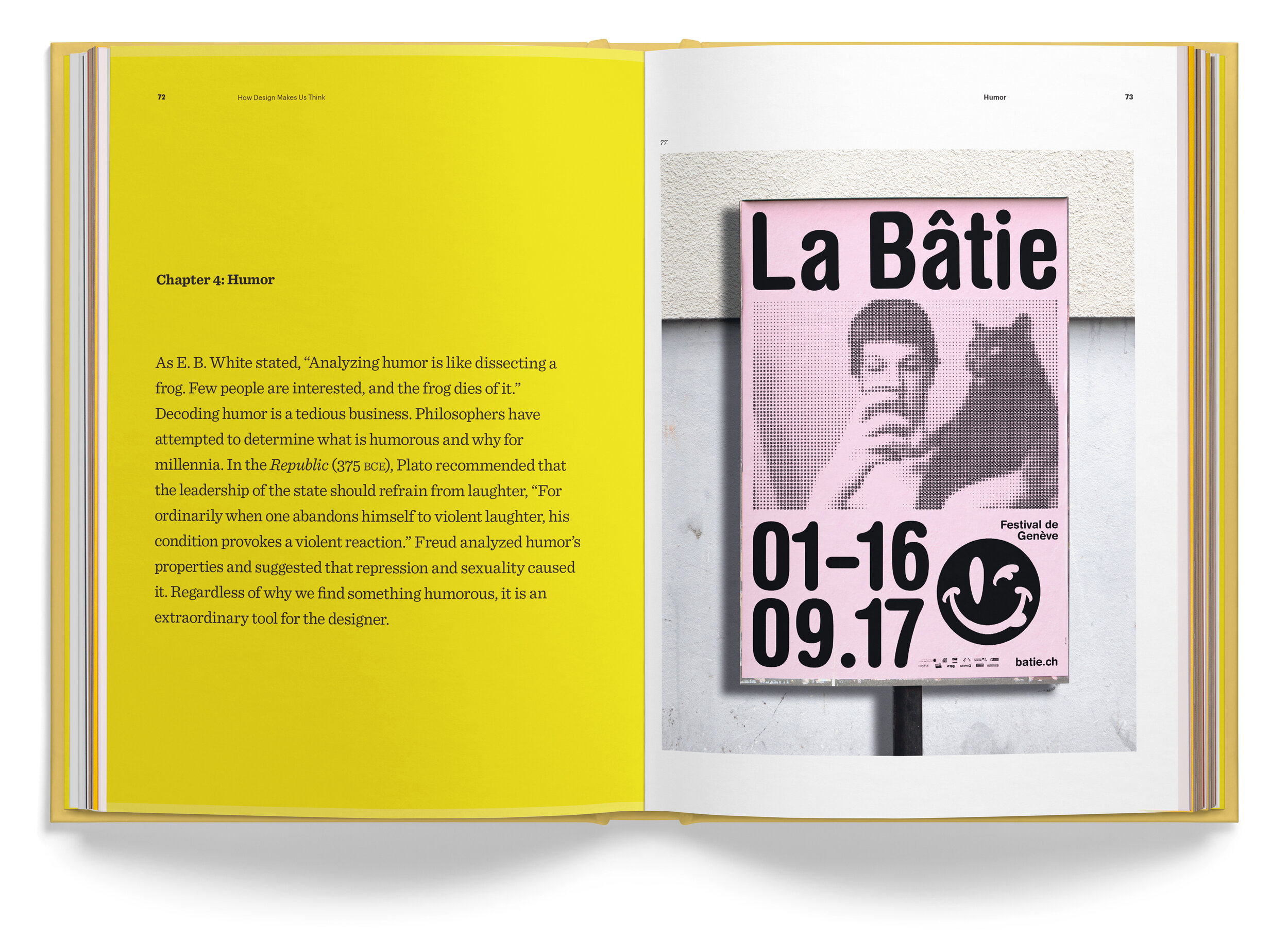 Editor’s Note: The following is an excerpt from Sean Adams’ newest book, How Design Makes Us Think (Princeton Architectural Press). The book explores why we respond to design in certain ways, and how designers use visual cues to create the response. For example, why do we think primary colors are friendly? How do we determine if something is efficient and why does that matter? These questions and more are explored by Adams in chapter addressing a specific communication: seduction, humor, love, anger, pride, and more. This excerpt explores humor: how it works, why we respond to it, and how designers use it as a tool to disarm the audience.