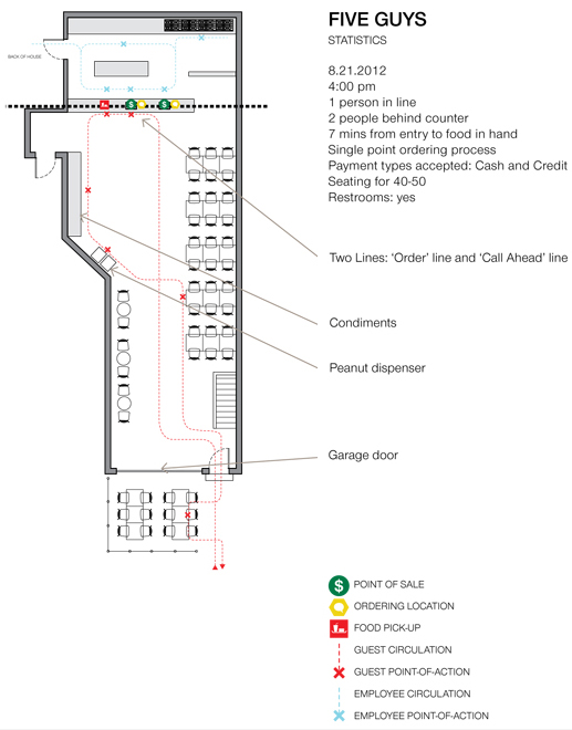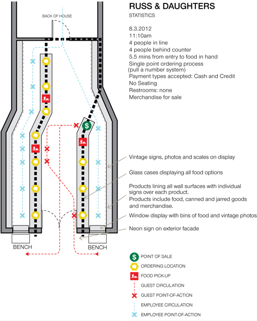 AB: It ranged. Artisanal places (like Russ & Daughters) don’t feel manipulative in an insidious way at all (other than showing off some great food and triggering all sorts of synaptic response), while others do (Five Guys and their peanuts, a pretty nasty and obvious trigger to go order soda or spend money on WATER). We didn’t just look at fast food joints, but also icons of New York (R&D, Katz’s) that do try to serve people quickly but I don’t think qualify as “fast food joints.” In these cases the manipulation is either entirely subliminal and beyond recognition, or it has been rendered unnecessary because a place has become iconic, the domain of the “regular.”