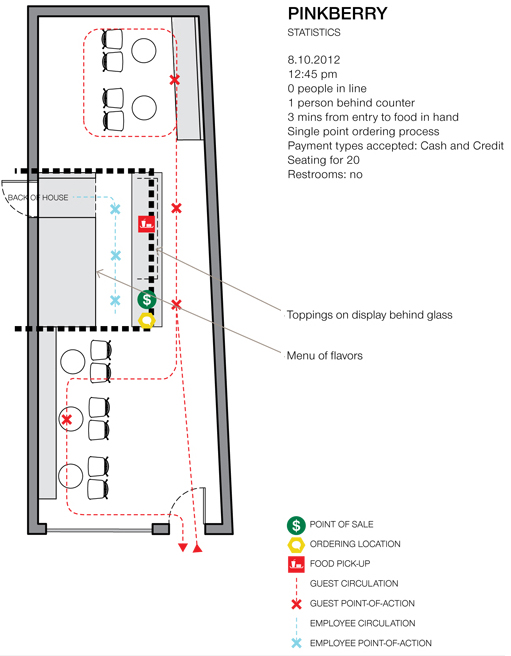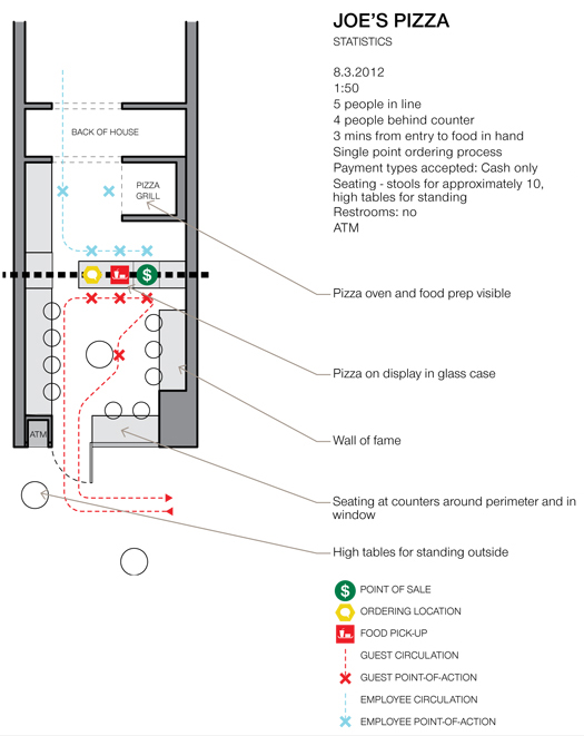 AB: We wanted to “measure” other New York standbys, to know what the experience was as a consumer from a quantitative as well as a qualitative standpoint. We’ve all been to these simply to order and eat, but we don’t actually measure them. Two people from the office did a lot of the field work, Alexandra Burr and Matthew Storrie, in compressed fashion.