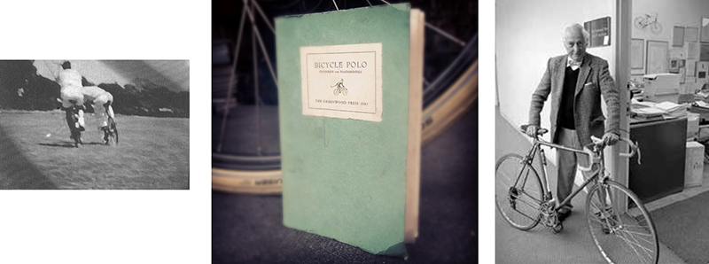 LEFT: Jack and his brother Bob playing bicycle polo, in a frame from a documentary on the sport by his other brother, Frank, 1940. RIGHT: Jack with his preferred means of transportation.