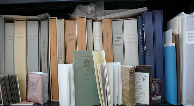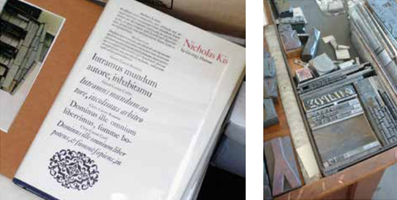 The place looked great and smelled great. On the walls were handbills for lectures on architecture and philosophy, invitations to art openings, keepsakes from Jan Tschichold, Herman Zapf, Wolfgang Weingart and Sam Francis, proofs from this or that project, specimen sheets from Nicholas Kis, snapshots of Jack with Tschichold, Zapf, Giovanni Marderstag and Alberto Tallone; Japanese letterforms and Persian pottery.