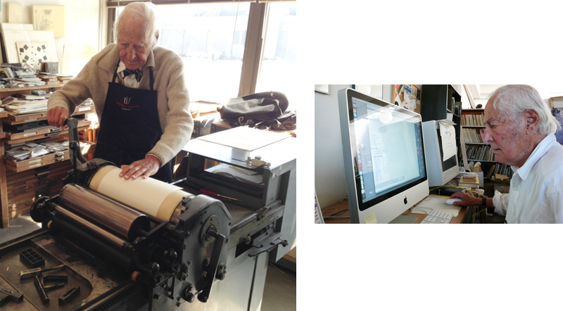 Left: Jack with Jan Tschichold in Basel, 1958. Right: with Herman Zapf in San Francisco, 2001.