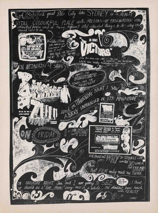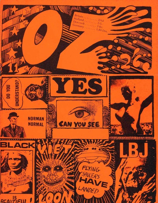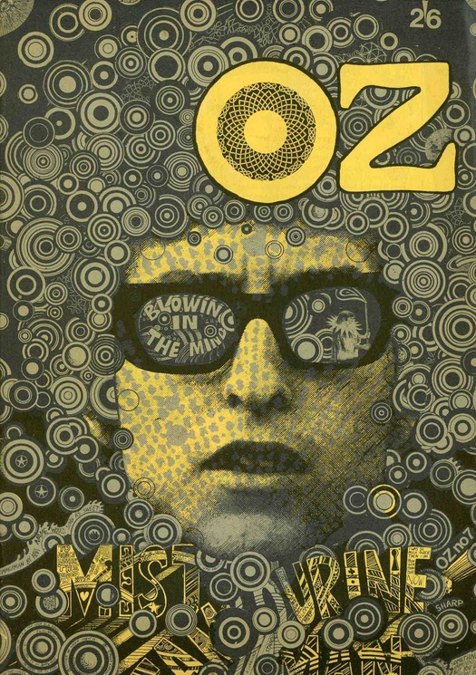 I was saddened to hear about the death of the Australian graphic artist Martin Sharp. In the 1960s, Sharp (born in 1942) was a brilliant innovator in illustration whose cartoons, collages and designs erased artificial distinctions between applied image-making and fine art. I first saw his work in the 1970s, as a teenage reader of the tail end of the underground press, and decades later it has lost none of its charge for me. To read Sharp’s obituaries and commentaries is to be reminded of the difficulties of accurate assessment that his work poses. British admirers of his artwork for Oz in London and his psychedelic posters and record sleeves have most likely never seen his work for the first Australian Oz and know little or nothing about Sharp’s activities after he returned to Sydney. Australian admirers won’t know much about Sharp’s work for London Oz unless they have access to old copies of the magazine. The handful of iconic images of covers and posters circulating on the Internet give only a partial sense of Sharp’s visual concerns in those years.