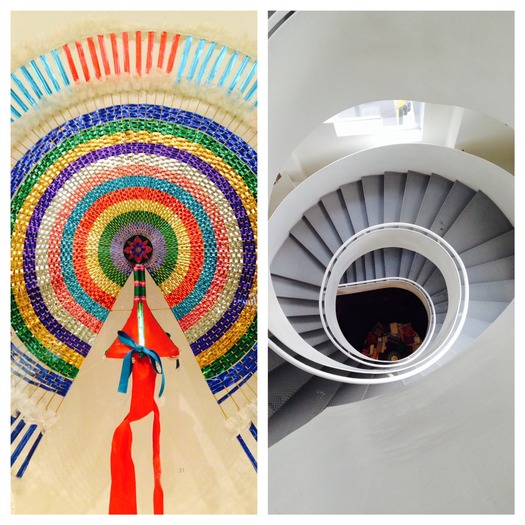In Mexico, everyone seems to be Alexander Girard. Not afraid of color, of two colors together, of tiles and stripes, of patterns on pattern, of humble materials made noble by aggregation. The Loeb Fellowship took me to Mexico City for a week in February, and there I found the roots of Girard's "opulent modernism" still growing. Everywhere I looked — underfoot, on the walls, over the doors — something particular was happening. I understood why he had been so inspired to collect and reinterpret Mexican precedents; more importantly I also saw Mexican designers and everyday people reinterpreting for themselves. Design with a small "d" was everywhere, reflecting a culture that seems to understand the small gestures that make a room, a building, or a city special. A church in Queretaro with checkerboard floors, a neo-classical facade, and a golden altarpiece of many doors. A museum in Mexico City with real Mayan artifacts, reconstructed Aztec facades, red-and-purple upholstery, bowls floating on plexiglass mounts. Girard distilled the elements of Mexican style, transforming them into an American modernist idiom, but it is not as if Mexican modernists weren't doing the same. Architect Luis Barragran spotlit a golden angel with a perfectly placed skylight. Artist, architect, designer Mathias Goeritz remade the baroque icon as a simple gold-leaf square. Contemporary projects embed ceramic trees of life in Art Deco hallways, or echo the peacock circles of traditional decor in industrial spiral staircases. At the studios of Frida Kahlo and Diego Rivera, lines of cacti march past Bauhaus silhouettes.