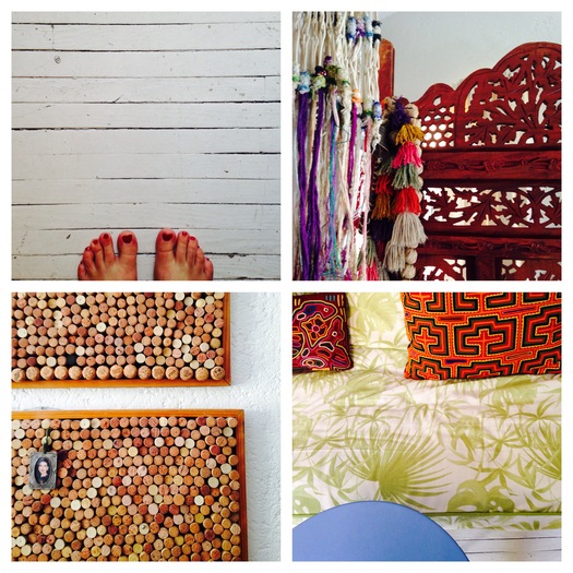 My last night in Mexico was spent at the home of a Mexican architect and an American recovering landscape architect. Mark, the latter, traveled to Mexico on a Fulbright some years ago and never came home. His decor seemed to me another entirely accessible version of the simple and baroque, minty and regal, combinations that I was seeing outside. The homemade cork boards stood in for the tricky, intricate ceramic Trees of Life, incorporating photos and other mementos. The white-painted floor offered the simplified backdrop of the neo-classical ceilings in many churches. A Crate & Barrel table kept company with hand-stitched pillow covers in patterns made since time immemorial. He even had a vase full of hand-blown glass balls, an inadvertant homage to the oversized bowl of such bubbles at Casa Prieto. Maybe this is a stretch, though it was a charming apartment. It was fun to see what happens to your taste when you fall in love with Mexico City now.