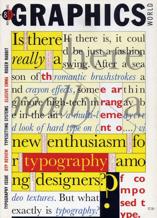 Graphics World magazine, November/December 1988. Typographic image by Phil Baines