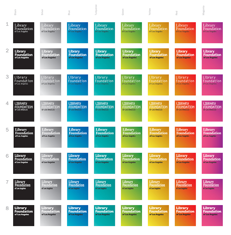 Library Foundation of Los Angeles identity system. AdamsMorioka, 2012