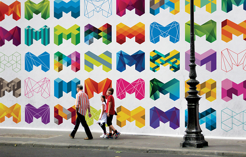 What is contrary here is the current fascination with these hard-line identity systems in a design culture that proselytizes the virtues of flexible logos and customizable systems. Let’s identify the differences. The classical post-war identity program followed the strict guidelines. Designers working with the program followed the rules in the manual and produced work that maintained a consistent visual system. By the 1980s, the idea of a flexible identity—that is, a logo that can change—came to the surface in the graphic design industry. The MTV logo (Manhattan Design, 1980) is a prominent example of the flexible identity system. Designers working with a flexible system were encouraged to bring their own creativity to the project and create dynamic and surprising results.