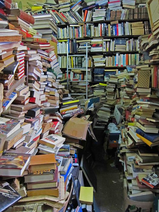 I called it a day and left. This impenetrable grotto of print didn’t look remotely like a functioning shop and I found it hard to believe after two brush-offs that the owner cared much about selling anything. Most of his stock had been reduced to clutter and rendered completely inaccessible, and any kind of persistence, let alone disturbing the precarious piles, was clearly unwelcome. Every item had its position in the edifice of paper and there it would stay. It was as though unbridled directionless hoarding rather than selling to book seekers had become the true purpose of the store.