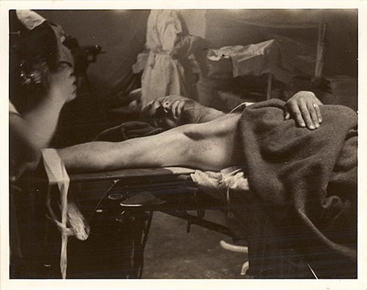 While visiting a makeshift evacuation hospital set up on the bluffs overlooking the beaches, he found himself scanning the dead and dying in search of the telling detail. What he discovered was a soldier stretched out in an almost classically painterly pose. The soldier looks both vulnerable and serene.