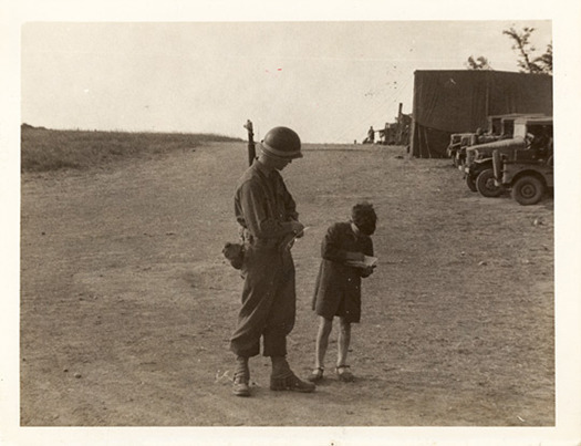 Bromberg arrived on Omaha beach after the most brutal fighting had already taken place. Nevertheless he was overwhelmed by what he saw. “Here I was with all this debris of the war and bodies and destroyed homes and destroyed bunkers and destroyed minefields and hedgerows and orchards…it was this enormous visual tapestry. How the hell are you going to handle it?”